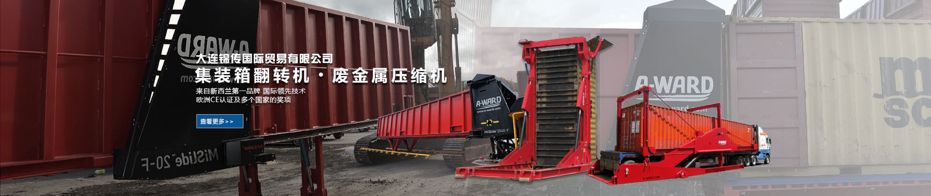 大連錦傳國(guó)際貿(mào)易有限公司于2013年11月與新西蘭A Ward公司達(dá)成戰(zhàn)略合作,成功代理集裝箱翻轉(zhuǎn)機(jī)、廢金屬壓縮機(jī)等產(chǎn)品在中國(guó)大陸的銷(xiāo)售、維護(hù)及保養(yǎng)業(yè)務(wù)。本公司重合同、守信用,保證產(chǎn)品質(zhì)量,以經(jīng)營(yíng)多種特色的產(chǎn)品和薄利多銷(xiāo)的原則,贏(yíng)得了廣大客戶(hù)的信任與厚愛(ài)。現(xiàn)長(zhǎng)期出口產(chǎn)品至澳大利亞,巴西,德國(guó),俄羅斯,哥倫比亞,美國(guó),泰國(guó),羅馬尼亞,新西蘭 ,意大利,越南,印度,印度尼西亞等國(guó)家。
